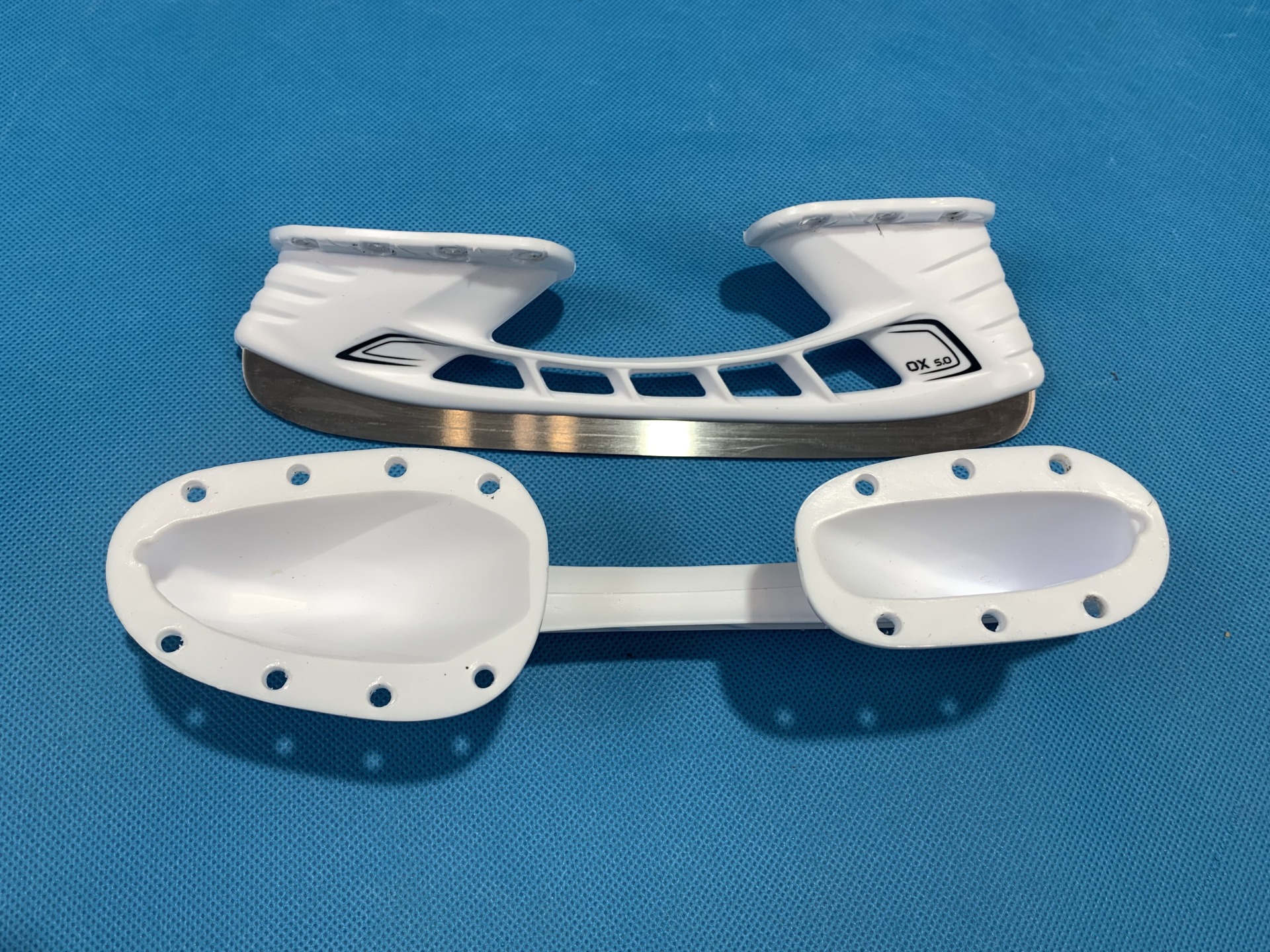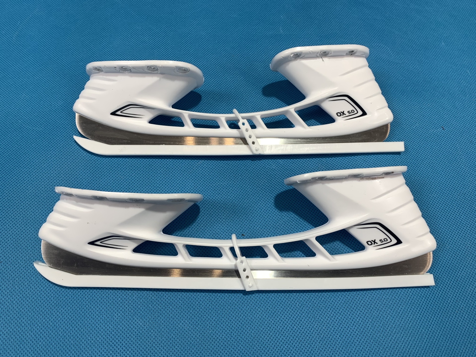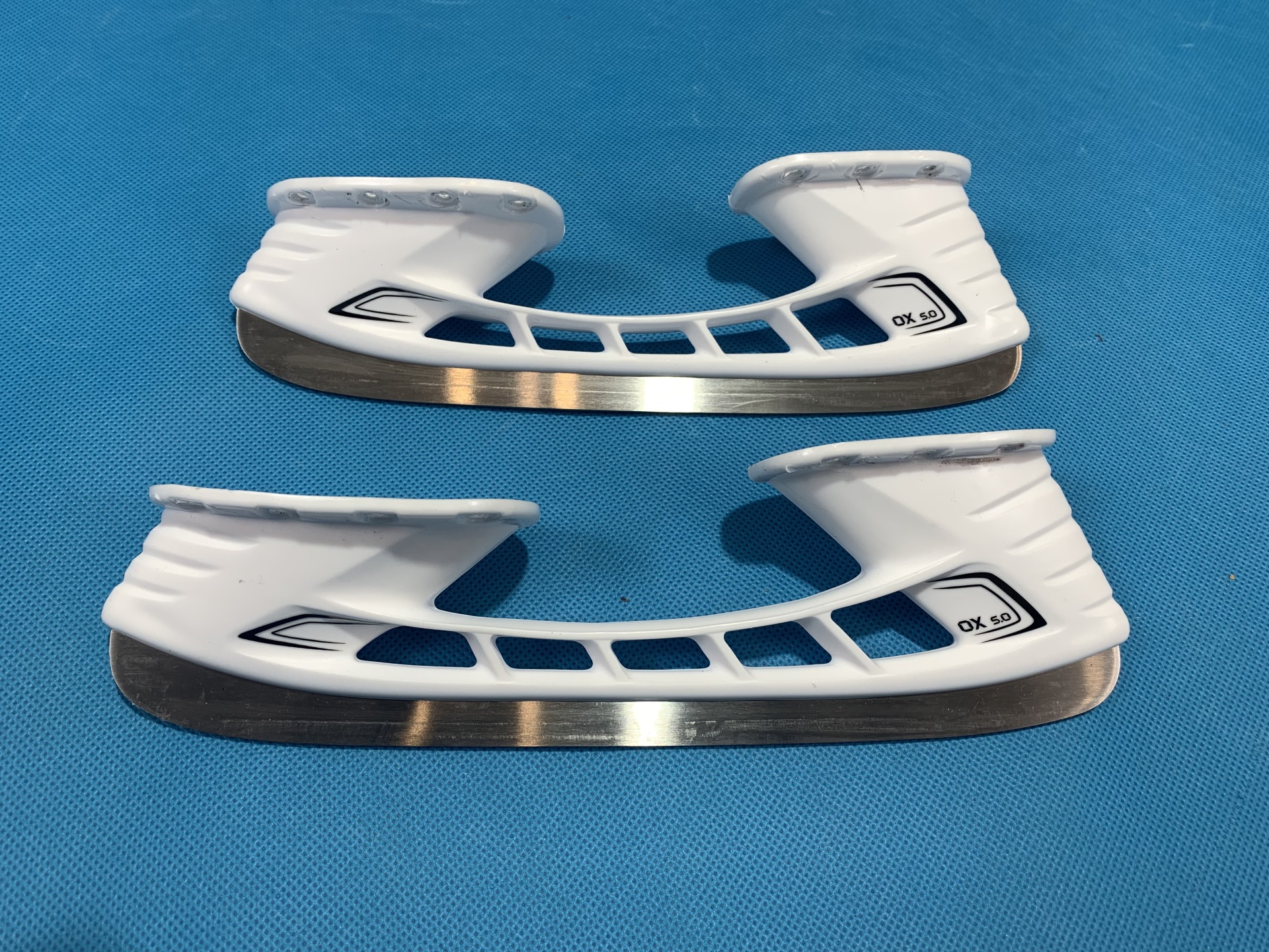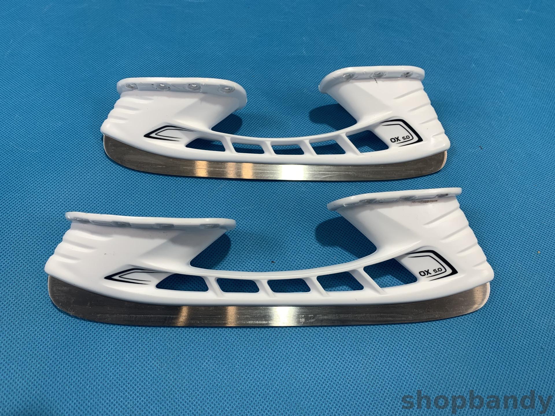 Надежная система крепления лезвия к морозостойкому стакану. Оптимальная высота, позволяющая игроку совершать более резкие повороты. Лезвие для коньков из нержавеющей стали, отполированной до зеркального блеска, повышающей прочность лезвий.